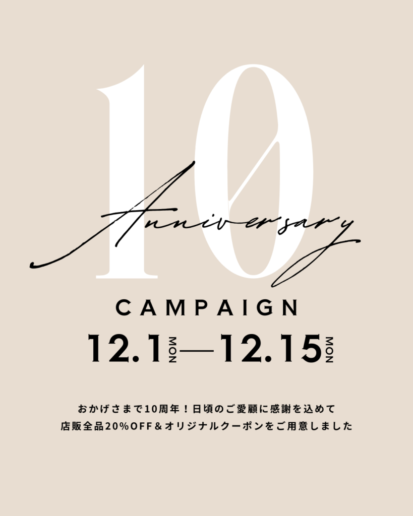 10周年の感謝を込めて、下記の特別クーポンをご用意いたしました。